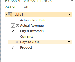 - Uncheck/Check only the following fields (Actual revenue, City, Product)