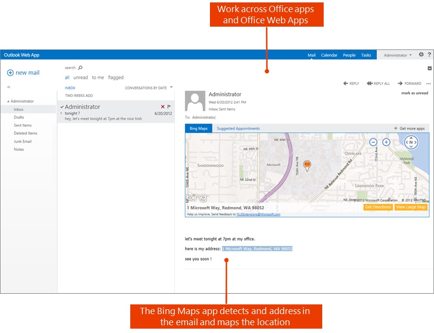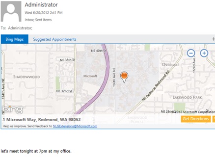 The Bing maps app can detect an address right with the email so you can see exactly where you need to go.
