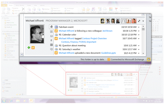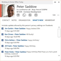 11. Social feeds on the Outlook Contact Card (Outlook 2013)
