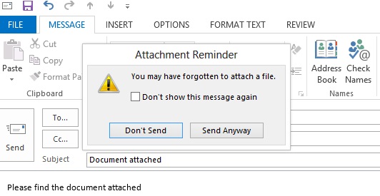 We have all been here! Now Outlook will detect certain words and if there is no attachment it will warn you before you send the email.