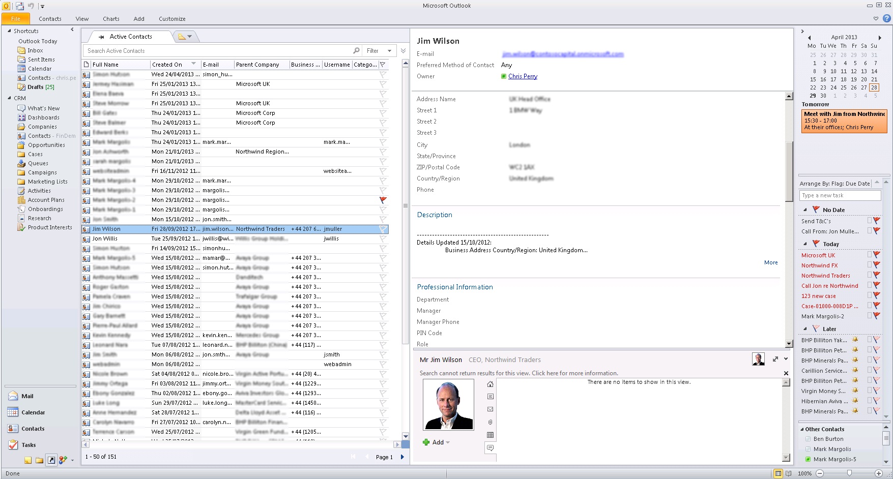 With the integration of Outlook and Microsoft Dynamics CRM it is difficult to delineate what is an Outlook feature and what is a CRM feature. A colleague of mine (Ian Anderson) says CRM is not integrated with Outlook it is embedded in Outlook, I think that is a great way to think about it. When I consider the challenges of user adoption in CRM projects I’m always reassured when the users are Outlook users, most of the time they don’t even know that they are using CRM. The advantage of this is often taken for granted but should never been underestimated.