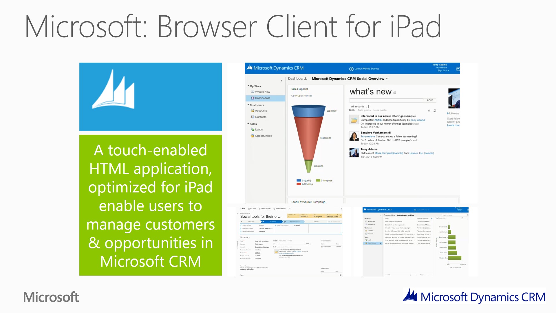 iPad client available today for CRM Online customers, availability for on premise is coming later in 2013.