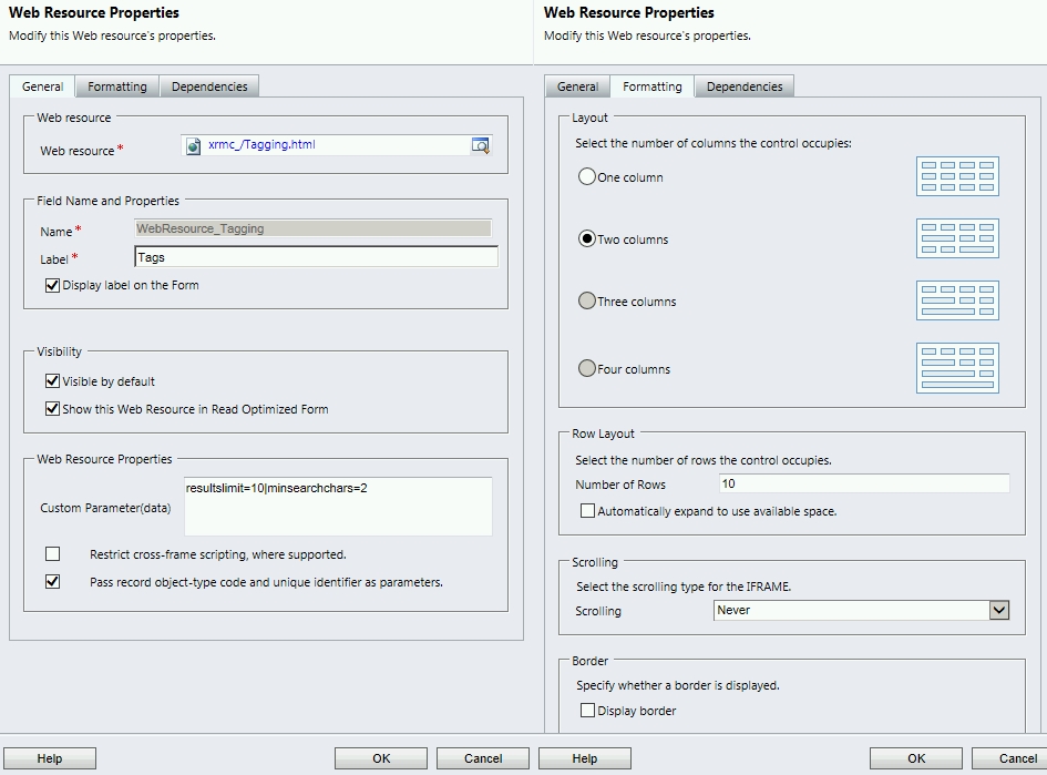 - Search for the Tagging.html web resource and configure the settings on the General and Formatting tabs exactly as below