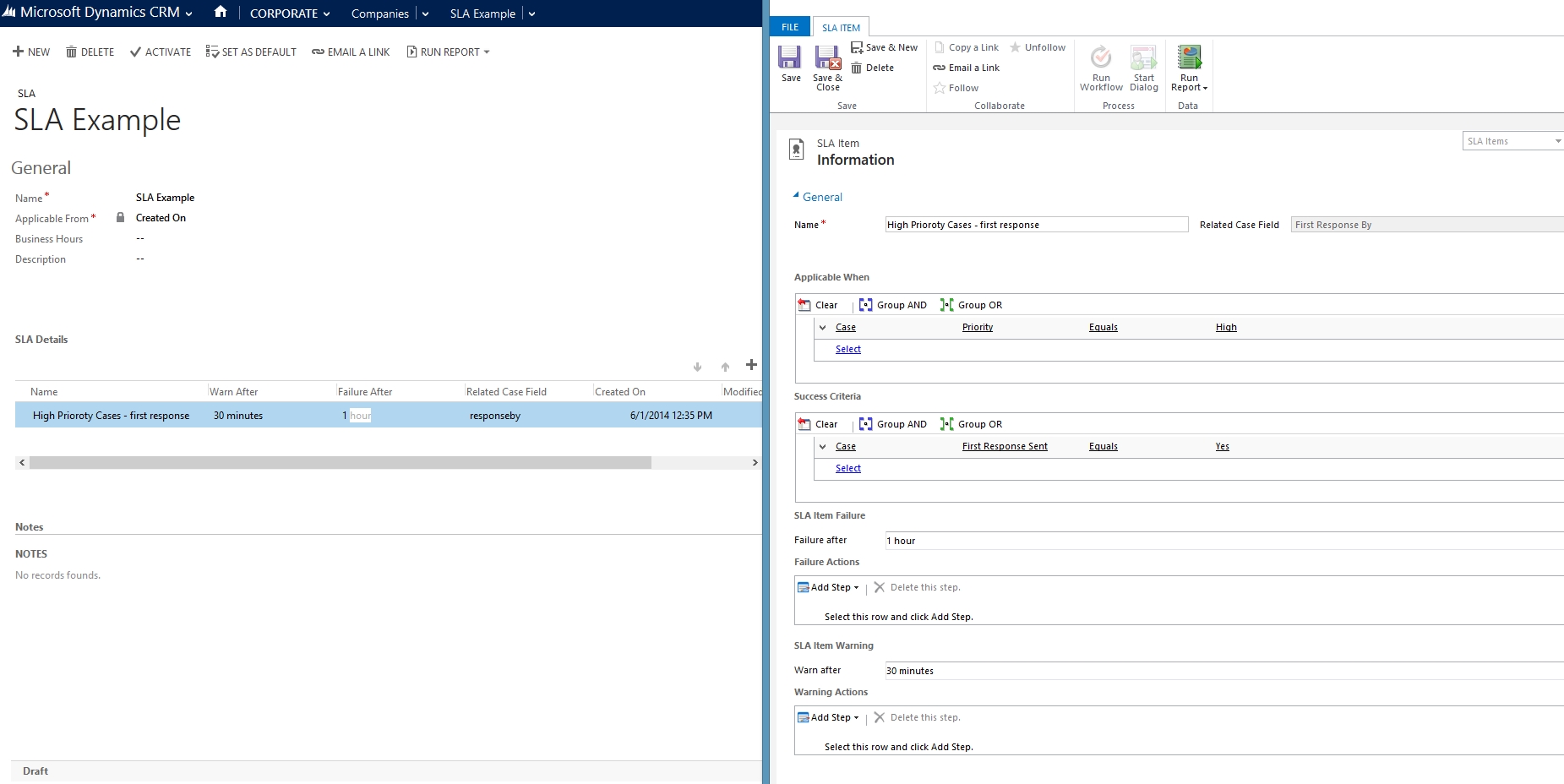 The SLA determines the service levels and actions that you want to apply, such as what happens when response times and resolution times are not met.