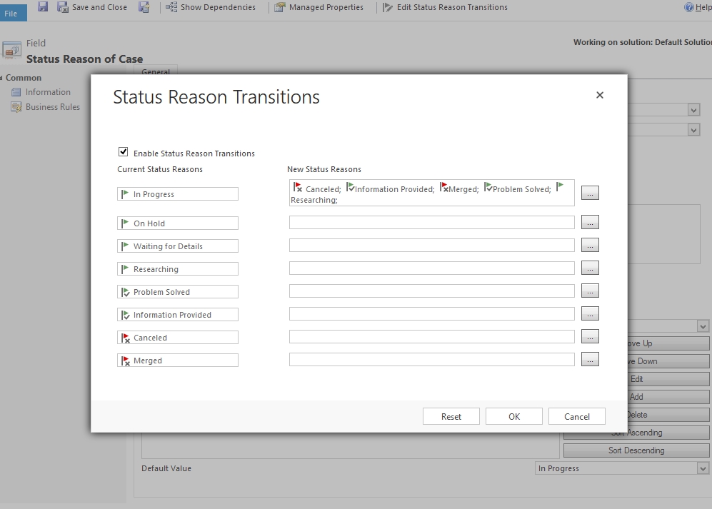 Enables users to more easily manage and configures the status’s of a record(s) status. For example you can use this to determine what status values might be available to a particular user at any moment. For example when a record is in the in-progress state you might only want certain options to be available (e.g. closed or on hold)