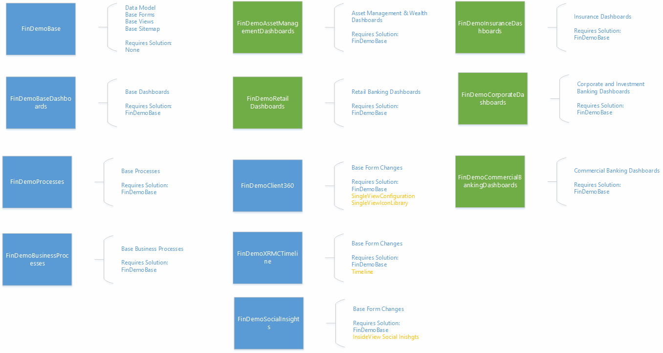 These solutions ensure that the CRM Fin Demo forms, attributes and layouts are not overwritten by the ISV or third party solutions.