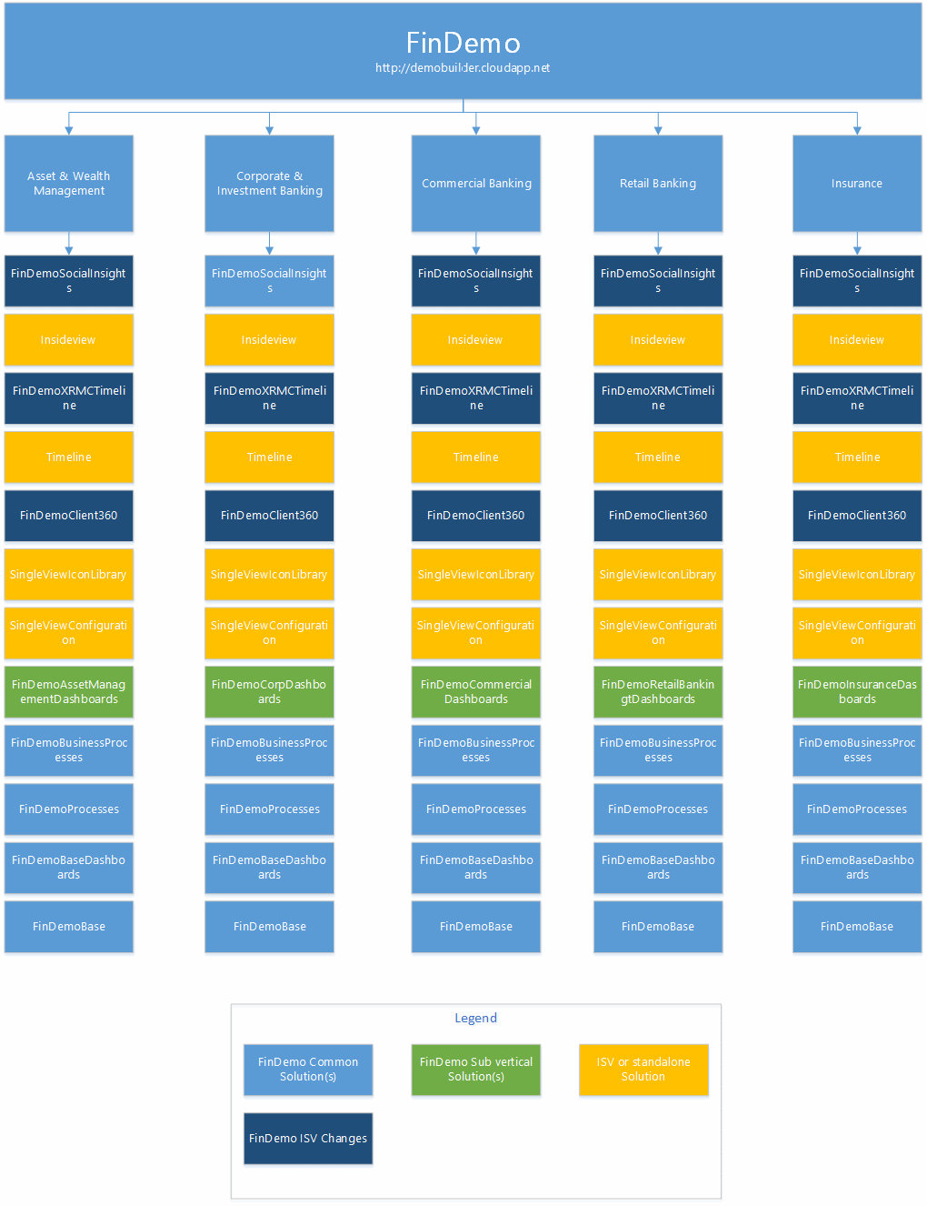 FinDemo is a financial services template / accelerator that consists of a number of sub industry templates: